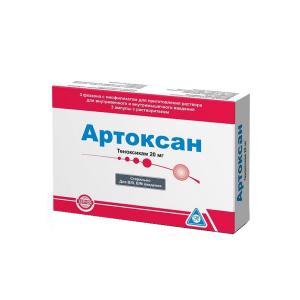 АРТОКСАН (лиоф. порошок д/инъекций 20 мг во фл. в комплекте с растворителем (вода д/инъекций в амп.2мл) №3)