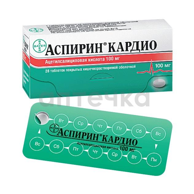АСПИРИН КАРДИО (табл.п.о.кишеч/раствор. 100 мг №14х2)
