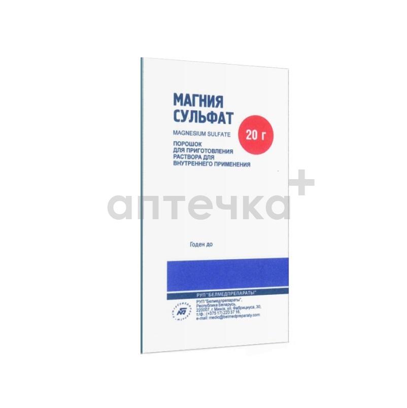 МАГНИЯ СУЛЬФАТ (пор. д/приг. р-ра д/внутр.прим. пак. 20 г №1)