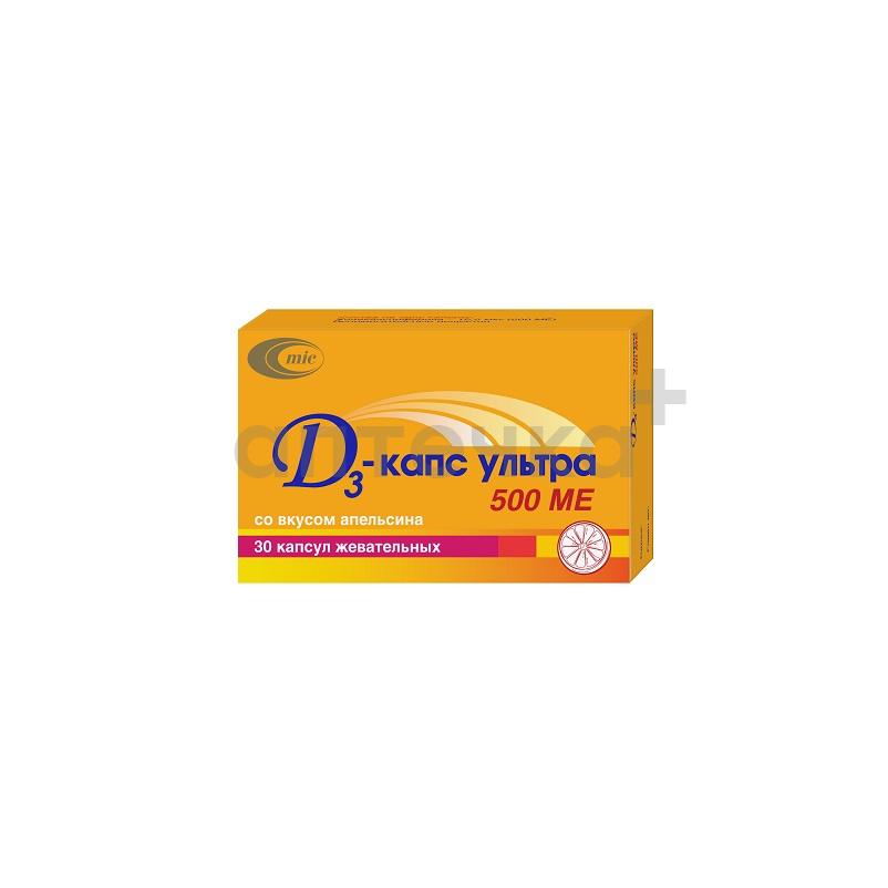Д3-КАПС УЛЬТРА (капс.жев. со вкусом апельсина 500 МЕ №10х3)