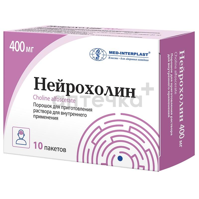 НЕЙРОХОЛИН (пор. д/приг. р-ра д/внутр.прим. 400 мг пак. №10)