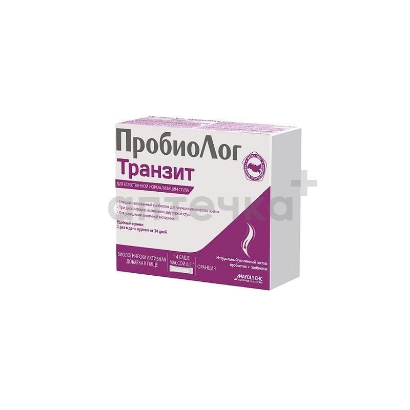 ПробиоЛог Транзит – специализированный синбиотик на основе комбинации: пробиотических бифидобактерий с натуральным пребиотиком - инулином. При курсовом приеме от 14 дней способствует: нормализации опорожнения кишечника за счет уменьшения времени кишечного транзита и увеличения частоты стула, уменьшению частоты симптомов кишечного дискомфорта, связанных с запором, нерегулярным опорожнением кишечника и метеоризмом, нормализации состава кишечной микрофлоры, участвующей в процессе пищеварения.