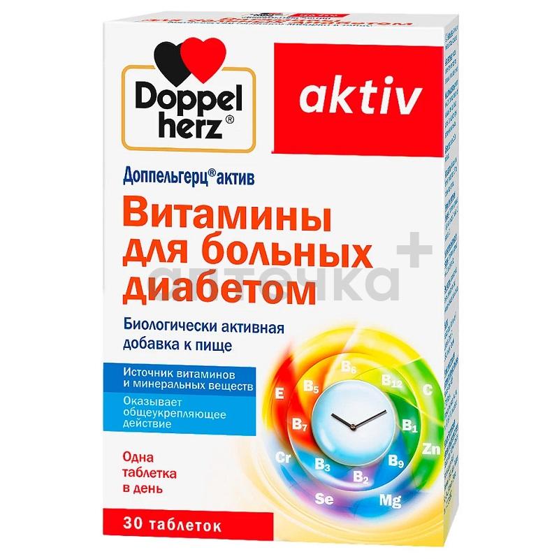 Доппельгерц актив Витамины для больных диабетом рекомендуется в качестве биологически активной добавки к пище- дополнительного источника витаминов и минеральных веществ для предупреждения развития осложнений; коррекции нарушений обмена веществ у больных сахарным диабетом; восполнения недостатка витаминов и минеральных веществ даже при соблюдении строгой диеты; восстановления организма и улучшения состояния после перенесенных заболеваний; улучшения общего самочувствия.