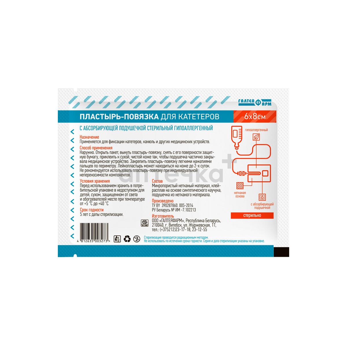 Пластырь-повязка (д/катетеров с абсорбирующей подушечкой стер. гипоал. 6х8см )