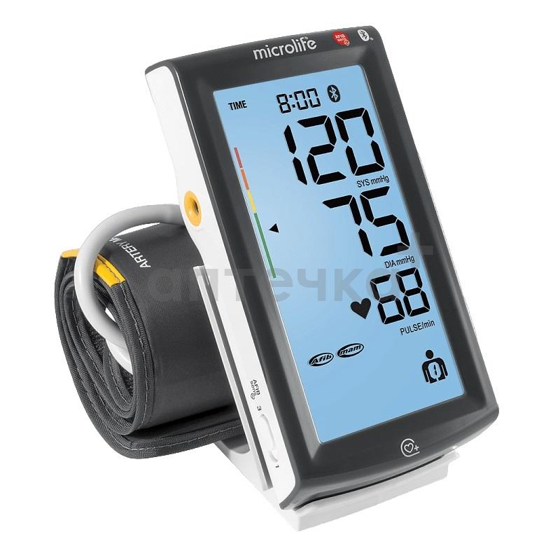 Автоматический тонометр сочетает в себе удобный сенсорный экран с инновационными и точными технологиями измерения артериального давления. Прибор совместим с новым уникальным приложением для смартфонов "Microlife Connected Health +", в котором можно удобно управлять всеми полученныими ранее измерениями давления. Подключение приборв к телефону осуществляется посредством Bluetooth, также есть возможность подключения к компьютеру через порт Micro USB с удобным программным обеспечением BP Analyzer+. В комплект входит адаптер.